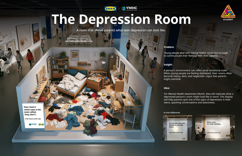 The Air Canada concept reimagines airline tariffs as a tool to support local Canadian businesses, turning travel into a force for economic connection. The IKEA campaign highlights the often-overlooked value of a messy room, reframing it as a sign of emotional safety and mental well-being for young people.